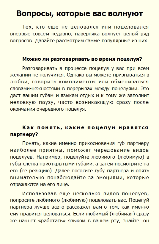 • Узнаете об искусстве незабываемого поцелуя все…