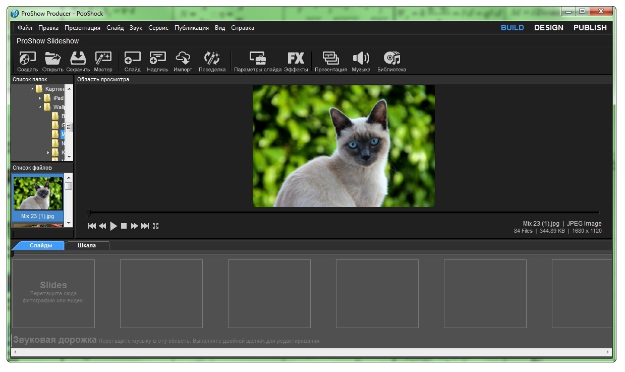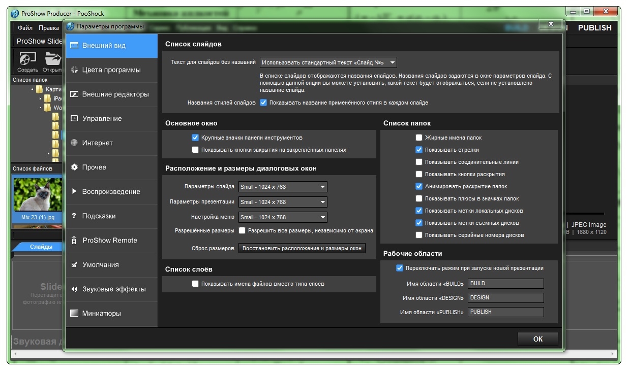 Аппаратное ускорение визуализации:- ProShow использует процессор видеокарты (GPU) для ускорения воспроизведения презентаций.
