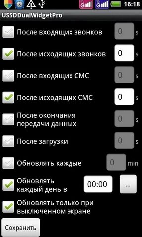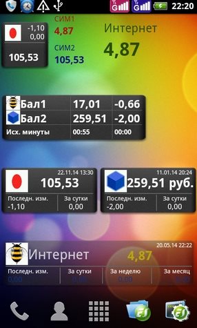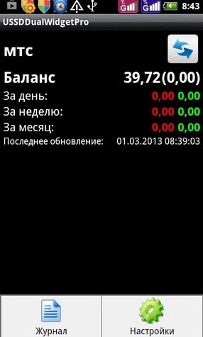 Автоматическое обновление в режиме "тихого" запроса доступно только в Pro-версии. Перед удалением USSDDualWidget не забудьте снять галку в Настройки телефона - Безопасность - Выбрать администраторов устройства. ИНСТРУКЦИИ И ПРИМЕРЫ НАСТРОЕКПрограмму необходимо устанавливать в основную память смартфона. Для работы программы необходимо удалить или заморозить другие программы работающие с USSD-запросами(USSD checker и т.п.). После установки требуется однократная перезагрузка. Программа корректно работает с двумя симкартами без прав root на большинстве смартфонов на платформах MTK(65xx, 67xx), Samsung Duos и на некоторых на Qualcomm. Для большинства телефонов на Android 5.x без прав root должен работать режим Mode 1. Для большинства телефонов кроме MTK 6573 и Samsung Duos подходит режим Dual Sim Mode 0. Для большинства телефонов на MTK 6573 подходит режим Mode 1. На Samsung Duos кроме S7562 должен работать режим Mode 2. На Samsung S7562 выбирайте режим Mode 0. На HTC Desire SV и HTC Desire V используйте Mode 3. Mode 4 - режим "тихого" USSD-запроса для смартфонов на MTK(может потребоваться root) Mode 5(необходимы права root) - режим "тихого" USSD-запроса, подходит для всех смартфонов. Режим совместим с Android 4.2.2. Если при использовании Mode 5 после перезагрузки пропадает и не восстанавливается сеть, то попробуйте изменить подрежим. На китайских двухсимочниках на Qualcomm(ZTE 880, Huawei 8825 и т.п.) и Samsung S7562 попробуйте изменить настройку "Режим запросов". Если в Mode 5 не происходит обновления баланса (на одной или обеих симкартах), то попробуйте увеличить задержку после загрузки и сменить подрежим. После изменения подрежима и задержки после загрузки нужно перезагрузить смартфон(не быстрая перезагрузка). Для смартфонов на MTK нужно выбирать подрежим 1 в Mode 5 и задержку после загрузки секуд 15-20, после установки этих параметров требуется перезагрузка(не быстрая). Подрежим 1 также может использоваться на многих других смартфонах и во многих случаях позволяет решить различного рода проблемы с телефонией(если они возникают). На некоторых смартфонах нужно выставить в параметрах - управление сим-картами - голосовой вызов - "Всегда спрашивать". В USSDDualWidgetPro на Android 4.1 в некоторых случаях могут наблюдаться проблемы из-за того, что Google Play устанавливает программу в /mnt/asec (после перезагрузки пропадают виджеты и галка в администраторах устройства) В настройках, в пункте "О программе" можно посмотреть путь установки и при необходимости ее переустановить. Для обработки USSD-ответов на Android 4.2.2 и выше необходимо поставить галку "Перехватывать USSD" в системных настройках и включить программу в разделе "Спец. возможности" настроек Android или использовать режим USSD Mode 5 при наличии прав root.