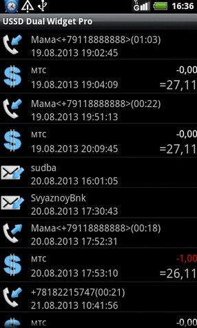 Автоматическое обновление в режиме "тихого" запроса доступно только в Pro-версии. Перед удалением USSDDualWidget не забудьте снять галку в Настройки телефона - Безопасность - Выбрать администраторов устройства. Программа может конфликтовать с Root Call Blocker, Call Master, Private Place SMS MMS CALLS, Balance Widgets, может работать совместно с ® Root Call SMS Manager При одновременной установке USSDDualWidget и ® Root Call SMS Manager, эти программы используют общую службу при взаимодействии с радиомодулем и управляет ей Root Call SMS Manager. Неправильные настройки или непредоставление root для Root Call SMS Manager может привести к неработоспособности USSDDualWidget в режиме USSD Mode 5.