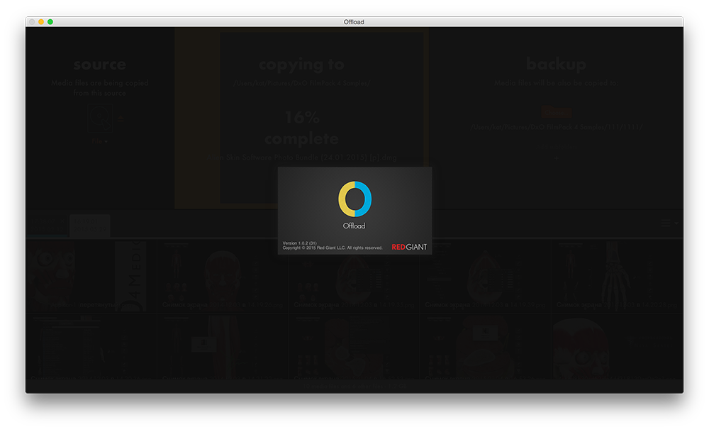 • Red Giant Offload - Простое в использовании автономное приложение для безопасной разгрузки и резервного копирования кадров из карты памяти вашей камеры в компьютер и/или на внешние накопители. Offload работает практически со всеми камерами, картами и медиа-форматами. Никакого специального оборудования не требуется. Offload идеально подходит для использования на съемочной площадке, в поле, или когда вы вернётесь домой.