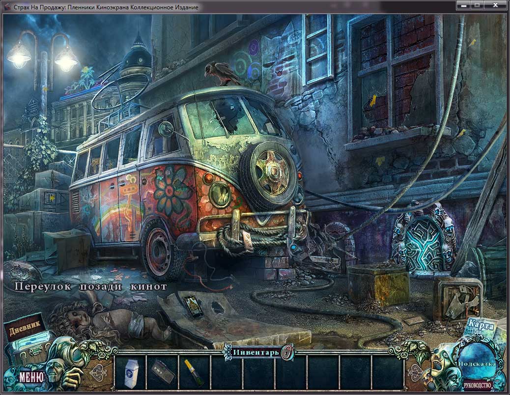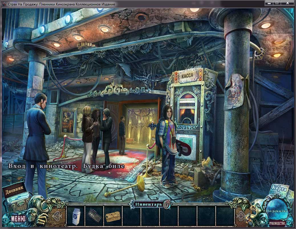 Описание: В старом кинотеатре снова зажглись огни. Зрители собираются на премьеру и не догадываются, что плывут как доверчивые рыбешки на огонек – прямо в зубастую пасть рыбы-удильщика. Они занимают места в зрительном зале, включается проектор и открывается портал в Хоррорвуд – последнее пристанище потерянных душ. Проведите журналистское расследование, выясните, что скрывается по ту сторону экрана и кто затеял эту игру! Для начала вам нужно попасть на сеанс. Без приглашения это не так-то просто, безбилетников здесь не любят. Но если закрыты парадные двери, всегда можно пробраться с черного хода, через окно в подвале – просто решите головоломку и догадайтесь, как оно открывается! «Страх на продажу. Пленники киноэкрана» – коллекционное издание игры. Для вас приготовлено множество бонусов: обои, картинки, музыка, дополнительная глава. Вы сможете самостоятельно настроить параметры сложности. А если не знаете, что делать – жмите на кнопку «Прохождение», там обязательно найдется подсказка!