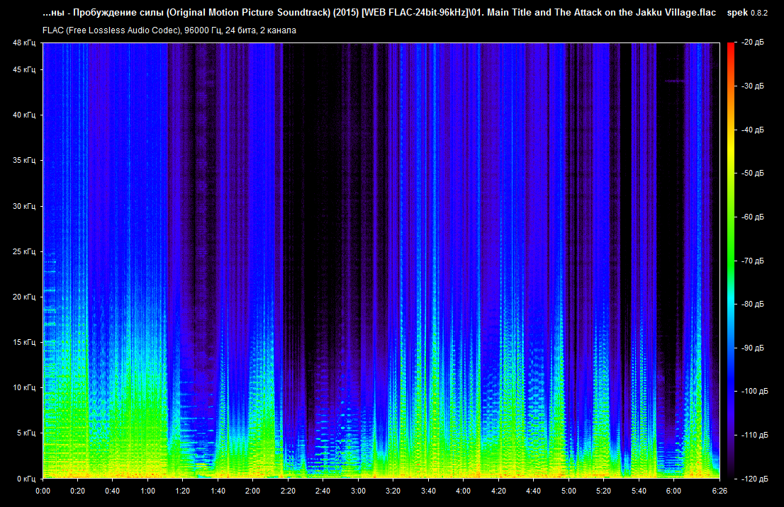 Общее Полное имя : D:\ТОРРЕНТЫ\ЗАГРУЗКИ\Звёздные войны - Пробуждение силы (Original Motion Picture Soundtrack) (2015) [WEB FLAC-24bit-96kHz]\02. The Scavenger.flac Формат : FLAC Формат/Информация : Free Lossless Audio Codec Размер файла : 67,0 Мбайт Продолжительность : 3 м. 39 с. Режим общего битрейта : Переменный Общий поток : 2556 Кбит/сек Альбом : Star Wars: The Force Awakens (Original Motion Picture Soundtrack) Альбом/Исполнитель : John Williams Часть : 1/1 Часть/Всего : 1 Трек : The Scavenger Трек/Положение : 02 Трек/Всего : 23 Исполнитель : John Williams Композитор : John Williams Жанр : Soundtrack Дата записи : 2015 Правообладатель : (P) 2015 Lucasfilm Ltd. Обложка : Yes Тип обложки : Cover (front) MIME-тип обложки : image/jpeg Примечание : Release by sergey26.08
