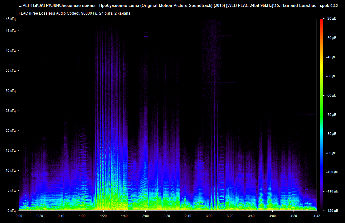 Общее Полное имя : D:\ТОРРЕНТЫ\ЗАГРУЗКИ\Звёздные войны - Пробуждение силы (Original Motion Picture Soundtrack) (2015) [WEB FLAC-24bit-96kHz]\15. Han and Leia.flac Формат : FLAC Формат/Информация : Free Lossless Audio Codec Размер файла : 84,9 Мбайт Продолжительность : 4 м. 42 с. Режим общего битрейта : Переменный Общий поток : 2524 Кбит/сек Альбом : Star Wars: The Force Awakens (Original Motion Picture Soundtrack) Альбом/Исполнитель : John Williams Часть : 1/1 Часть/Всего : 1 Трек : Han and Leia Трек/Положение : 15 Трек/Всего : 23 Исполнитель : John Williams Композитор : John Williams Жанр : Soundtrack Дата записи : 2015 Правообладатель : (P) 2015 Lucasfilm Ltd. Обложка : Yes Тип обложки : Cover (front) MIME-тип обложки : image/jpeg Примечание : Release by sergey26.08
