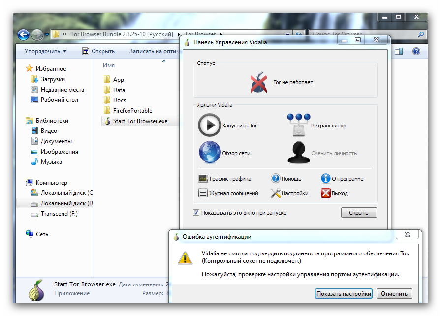 Vidalia не смогла проверить подлинность программного обеспечения Tor (контрольный сокет не подключен)