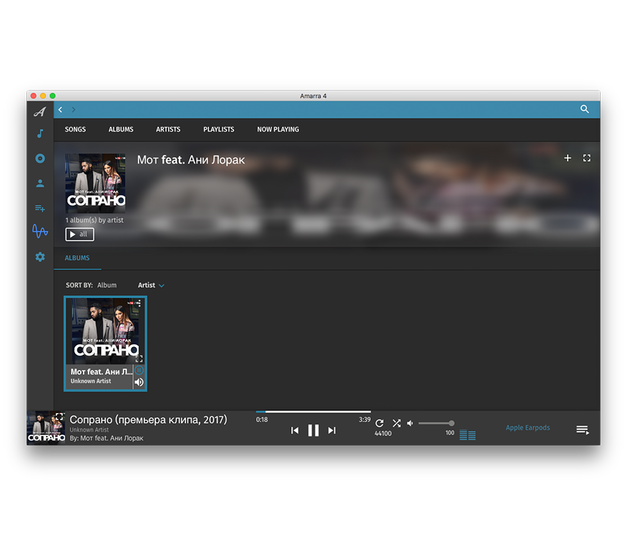 Amarra хвалят меломаны во всем мире для того, чтобы освободить подобную аналогу гладкость и ликвидности от цифрового источника. В действительно программа обладает достойным набором инструментов, может работать с iTunes и читает все распространённые форматы.