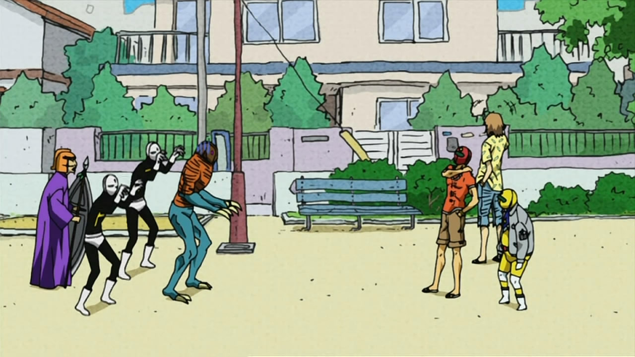 Описание:Это величественная история о борьбе между добром и злом, которая разворачивается в городе Кавасаки!..... главный супергерой Санред кроме борьбы с монстрами ничего не умеет, да и не хочет делать. Поэтому он и сидит на содержании у своей подруги и с неохотой появляется на стрелках с местными злодеями. Продолжение )