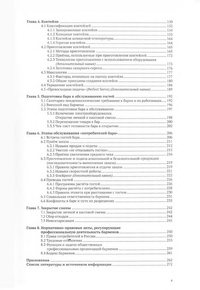 Материалы носят как теоретический, так и прикладной характер, в них описываются все аспекты работы бармена, с момента трудоустройства до окончания рабочей смены. Особое внимание уделено профессиональной терминологии, правилам подачи напитков, технологиям приготовления коктейлей и кофе, а также приёмам качественного сервиса, навыкам продаж и эффективной коммуникации с гостями. В учебном пособии подробно раскрыты требования действующего профстандарта «Официант/бармен» № 910н от 01.12.2015 г., а также рассмотрены вопросы техники безопасности и приведены примеры официальных документов, с которыми работает бармен: кассовая книга, накладная, технико-технологическая карта, чек-лист, стоп-лист и другие.