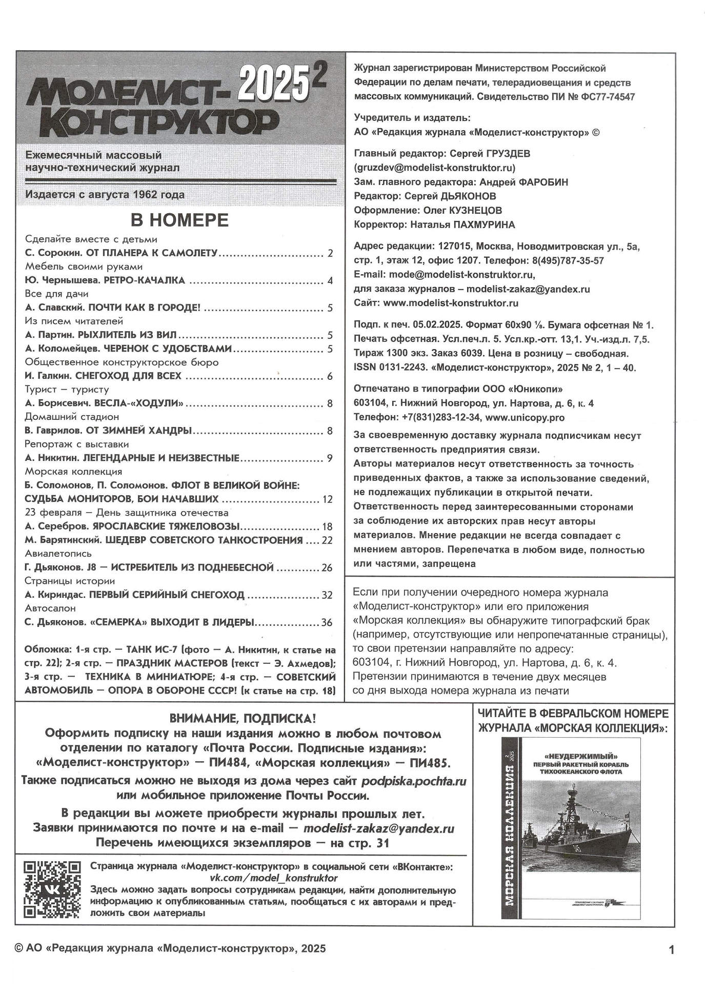 Журнал | Моделист-конструктор №2 (февраль 2025) [PDF]