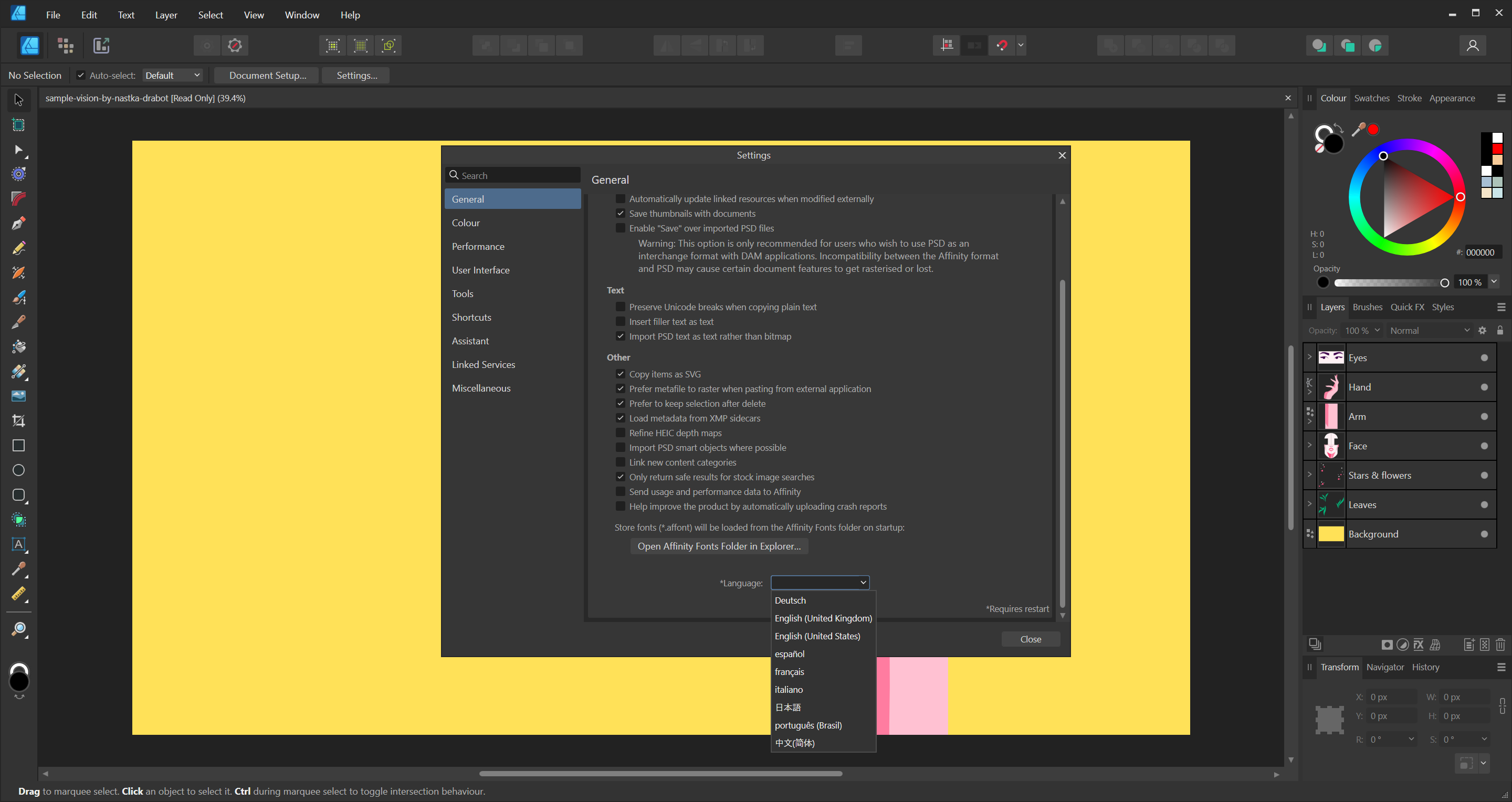 История отмены действий может быть сохранена вместе с документом, благодаря чему все операции отмены будут доступны вам всякий раз, когда вы возвращаетесь к своей работе. Встраивание и размещение монтажной области. Встраивание файлов Affinity, PSD или файлов других типов для упрощения упорядочивания больших композиций.