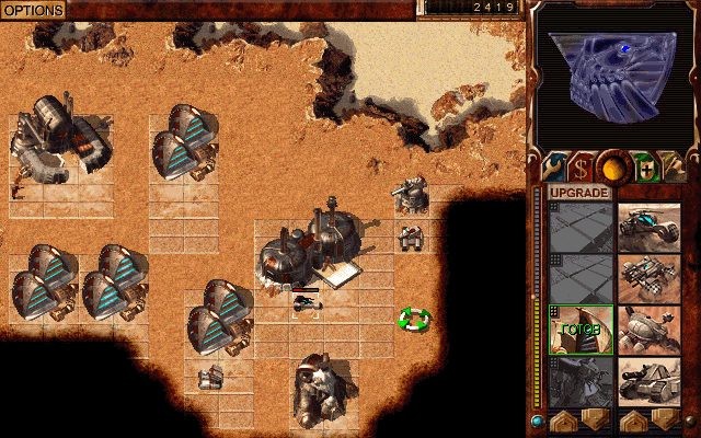 - Развитая экономика: Специя добывается комбайнами и перерабатывается в кредиты, которые затем используются для строительства и производства юнитов. Для получения энергии используются ветряные ловушки.