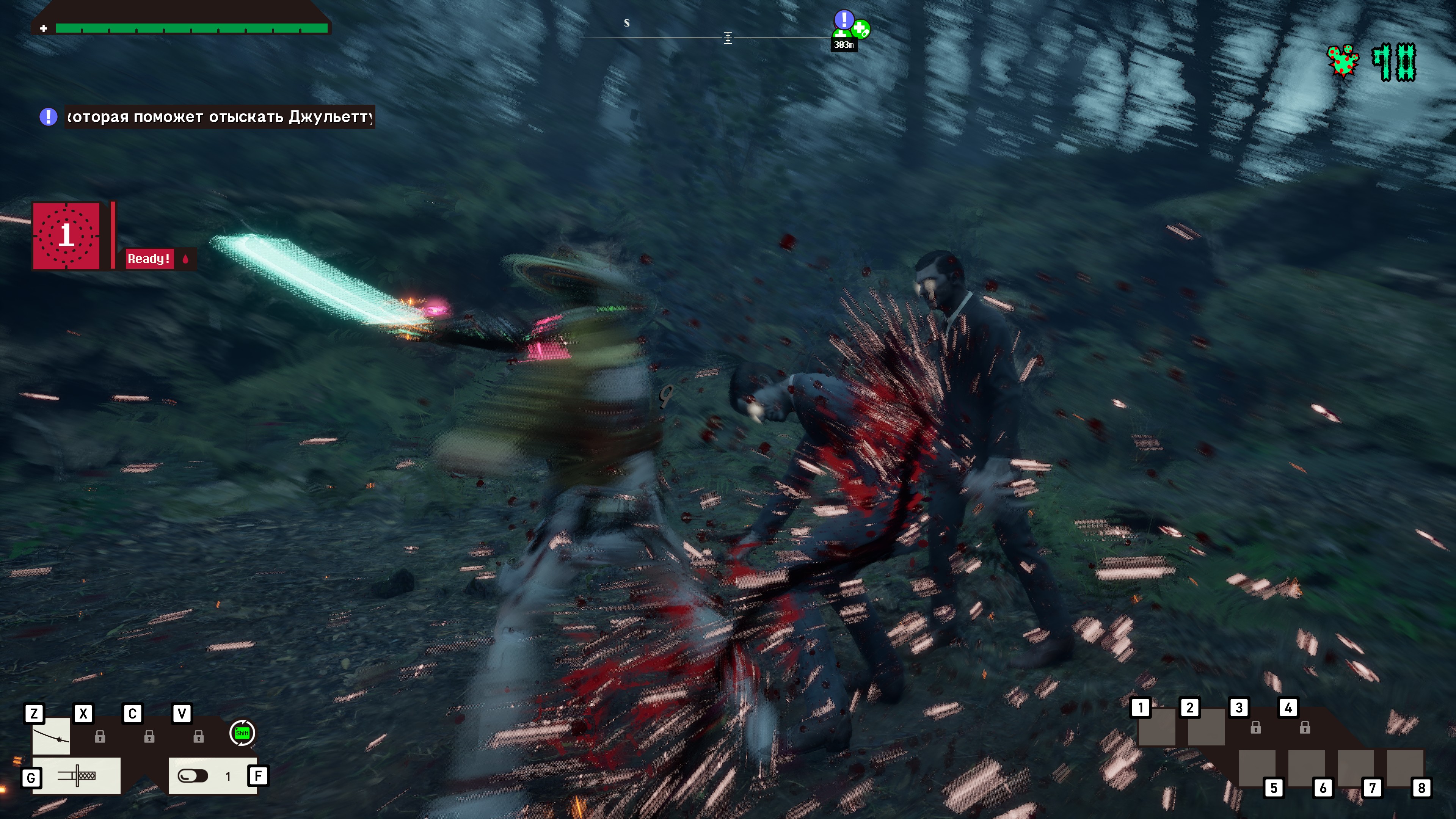 - В бою Ромео свободно переключается между мечами и огнестрельным оружием. Сметайте волны врагов, встающих у вас на пути, порождая новый вид кровавого экшена, и уничтожайте ужасающих преступников пространства-времени, которые вас поджидают. Поглощайте кровь врагов, чтобы высвободить особую атаку Ромео - Bloody Summer, способную перевернуть ход любой схватки. По мере развития сюжета разнообразное оружие Ромео можно усиливать и модифицировать, чтобы противостоять всё более мощным противникам.