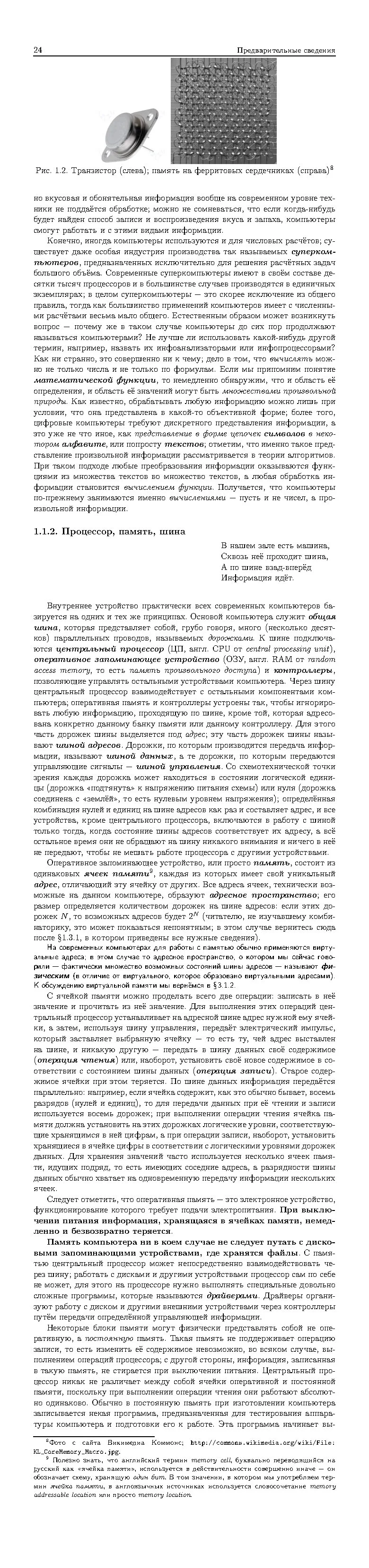 В первую часть книги вошли избранные сведения из истории вычислительной техники, обсуждение некоторых областей математики, непосредственно используемых программистами (таких как алгебра логики, комбинаторика, позиционные системы счисления), математических основ программирования (теория вычислимости и теория алгоритмов), принципы построения и функционирования вычислительных систем, начальные сведения о работе с командной строкой ОС Unix.