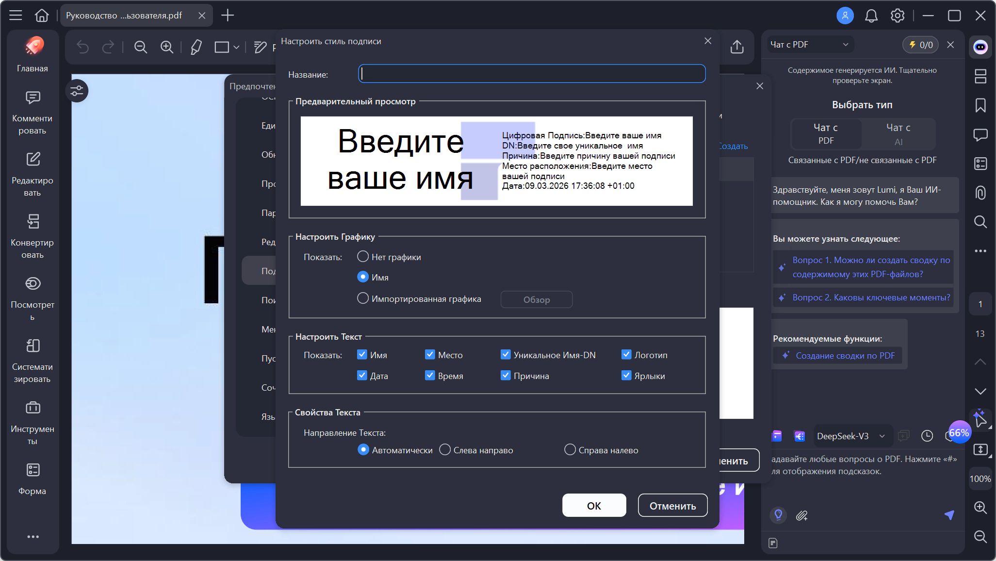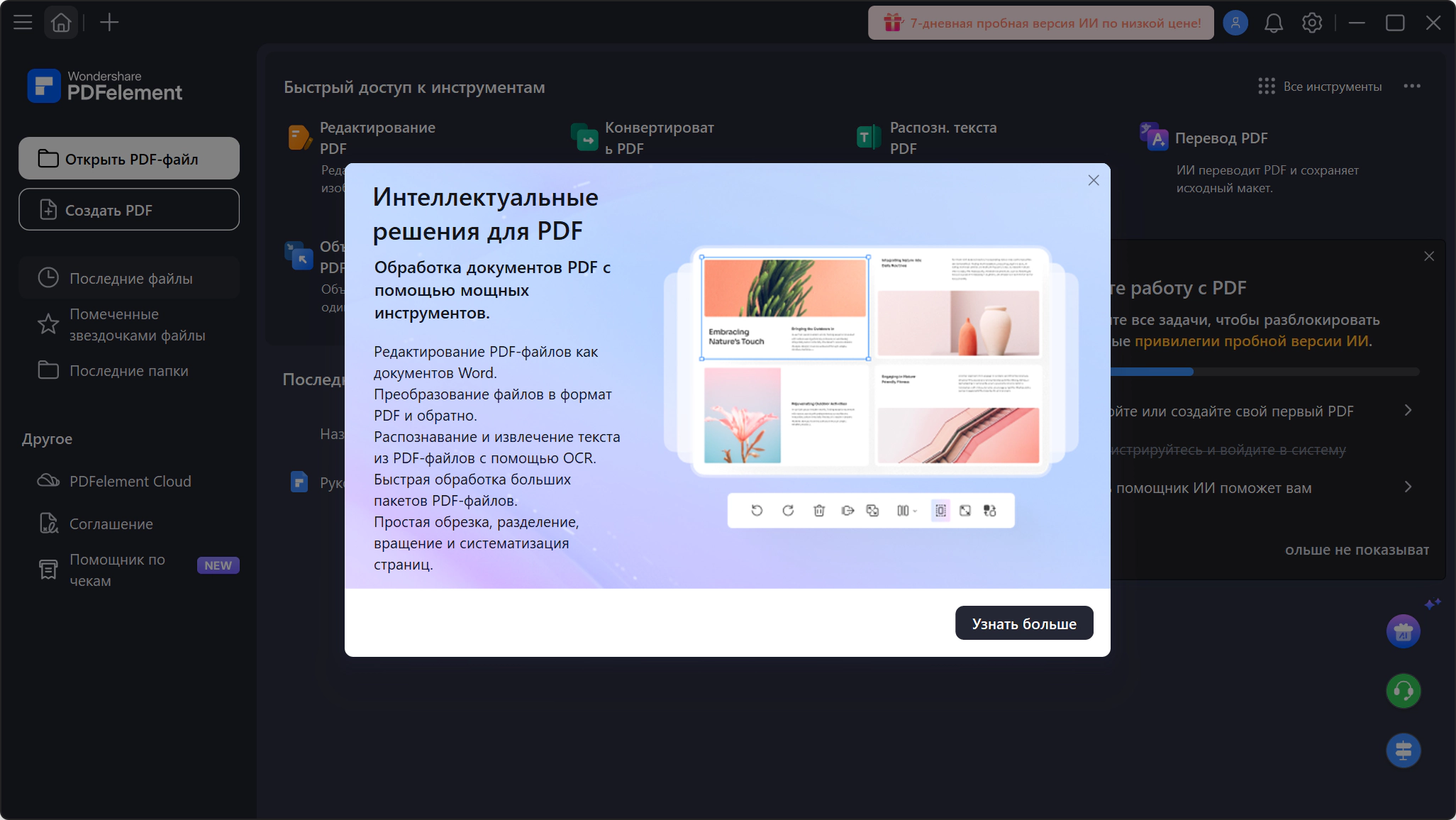 Описание:Wondershare PDFelement - программа для общего редактирования документов формата PDF, инструмент из серии все-в-одном. В функции редактирования входит поддержка изменения текста и шрифта. Реализована поддержка технологии OCR (оптическое распознавание символов), есть режим конвертирования документа в различные форматы, имеется поддержка добавления своих картинок в документ, можно нумеровать страницы для быстрого перемещения в дальнейшем. Wondershare PDFelement может добавлять нужные Вам формы на страницы документа, есть режим позволяющий соединить несколько документов в один, конечно не обошлось и без возможности добавлять свои аннотации. При желании документ можно после редактирования защитить паролем и установить цифровую подпись. - Редактирование