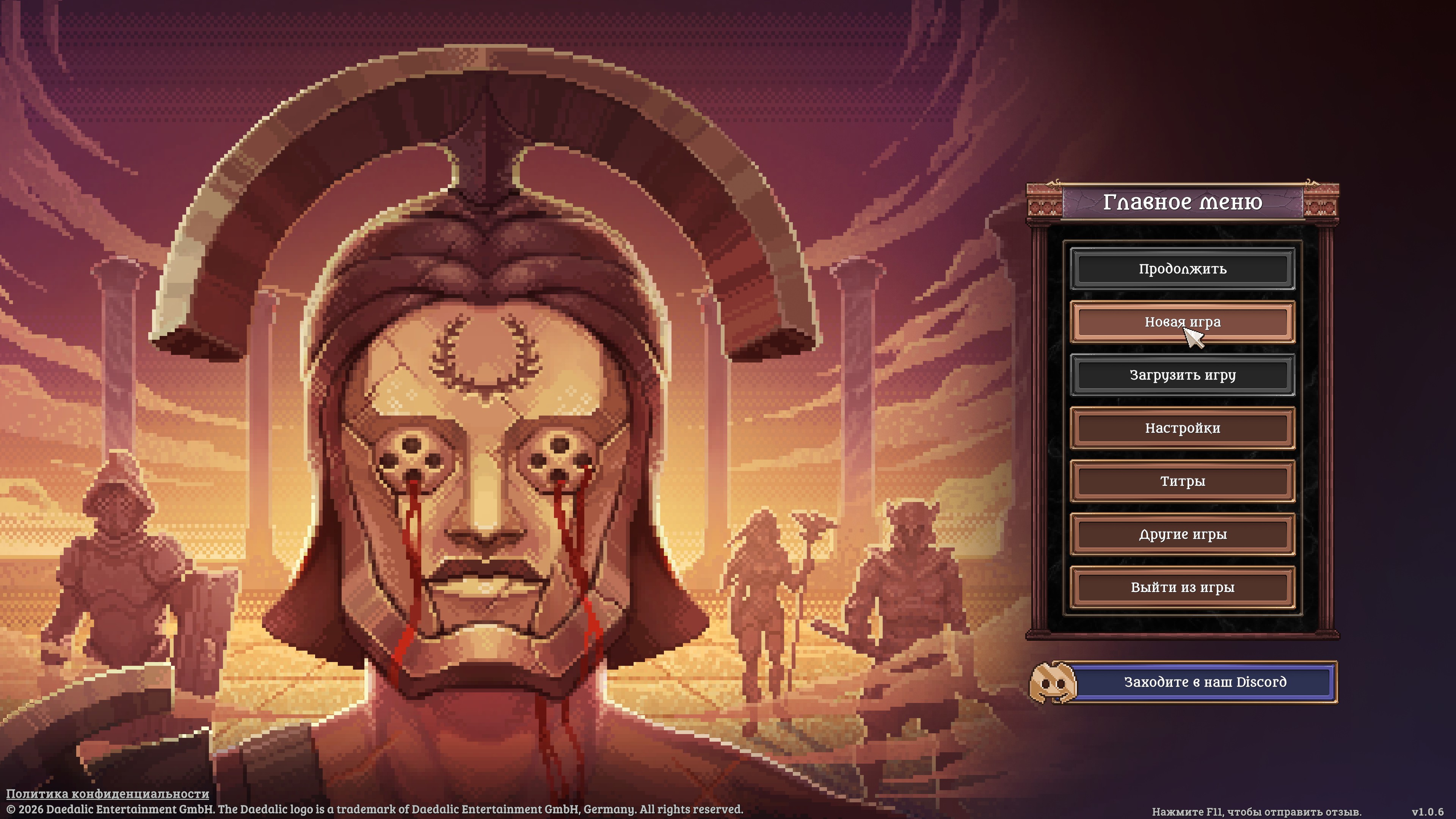 Дата выхода: 5 ноября 2025 (релиз 12 марта 2026) Жанр: Инди, Ролевые игры, Стратегии Официальный сайт: ссылкаРазработчик: Exordium Games Издатель: Daedalic Entertainment Релиз от: Let'sРlay Язык интерфейса: Русский, Английский, Французский, Немецкий и другие Язык озвучки: Английский Язык субтитров: Русский, Английский, Французский, Немецкий и другие Локализация: Exordium Games Версия: 1.0.6 Тип издания: Repack Системные требования: Операционная система: Windows 10 (х64) Процессор: Intel Core i5-6400, AMD FX-8320 Оперативная память: 8 ГБ Видеоадаптер: NVIDIA GeForce GTX 960, AMD Radeon R9 280 Свободного места на жестком диске: до 1 ГБ Таблетка: Присутствует (Goldberg, Rune) Описание:Bloodgrounds сочетает тактические пошаговые бои с элементами стратегии, ролевой игры и рогалика. Поднявшись со дна арены, вы стали состоятельным патроном и теперь нанимаете, тренируете и командуете отрядом закаленных гладиаторов на пути к славе или смерти. Возглавьте отряд гладиаторов в пошаговых боях на арене. Нанимайте бойцов, тренируйте их, а иногда даже жертвуйте ими ради славы. Но помните: ваши гладиаторы - смертные. Погибнув в бою, они будут потеряны навсегда... но память о них останется в веках.