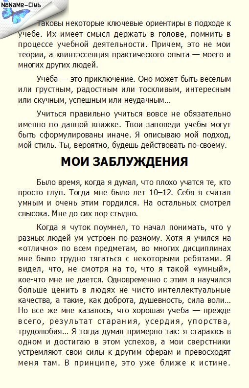 Описание:Книга содержит концентрат проверенных на практике идей и методов, позволяющих на качественно более высоком уровне организовать процесс учения, оптимизировать усвоение необходимого материала, сделать учебу не рутинной обязанностью, а увлекательным, творческим делом.Старшеклассники, студенты, родители школьников, учителя, психологи — вот заинтересованные адресаты этой книги.
