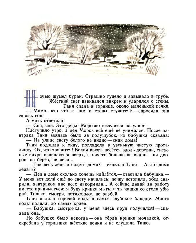 Описание:Ночью шумел буран. Страшно гудело и завывало в трубе. Жесткий снег взвивался вихрем и ударялся о стены.