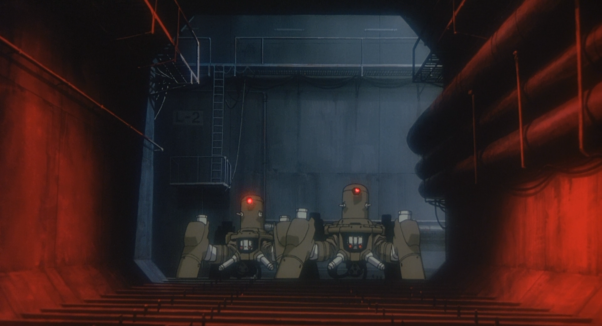 Вышеозначенная драма разворачивается неспешно, даже более неспешно, чем обычно принято у Осии. Параллельно с ней почти постоянно что-то происходит: ездят танки, вертолёты расстреливают ангар с роботами, военные созерцают экраны своих компьютеров… но всё это существует как будто само по себе и не является фоном основного сюжета (даром что имеет непосредственное к нему отношение). Не являются им и удивительно красивые, как будто подёрнутые дымкой, виды городских улиц и заброшенных промышленных зон. Они не могут быть «фоном» потому, что этим словом принято обозначать нечто, оттеняющее главное, и по отношению к нему не столь значительное. Здесь же скорее сюжет является фоном индустриальных пейзажей. Он не обязателен, он не требует понимания, его можно просто игнорировать, закрыть на него глаза. Но только на него — просто закрыть глаза нельзя.
